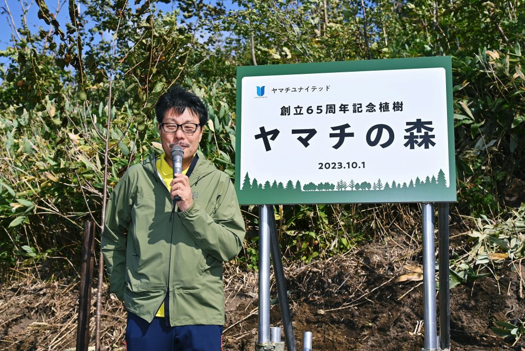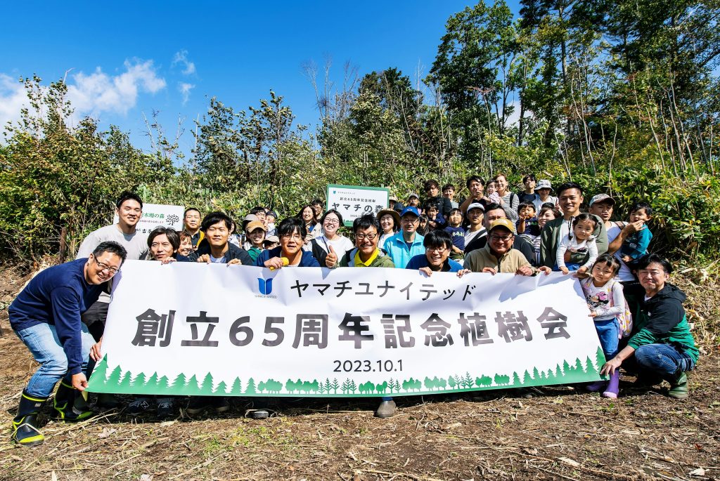 当社が担当する1ヘクタールの区画を「ヤマチの森」と名付け、社員有志とその家族が参加するかたちで、植栽や下草刈りなど初期管理を楽しみながら継続しています。