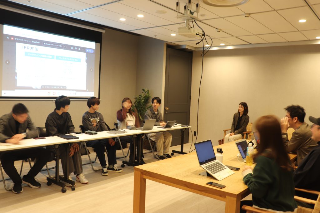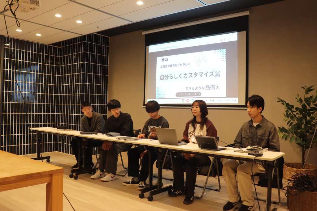 今回のテーマは「10 代向けのライフスタイルショップの提案」。インテリア・飲食事業部のスタッフが同席し、生徒たちのアイデアを真剣に聞かせてもらいました。