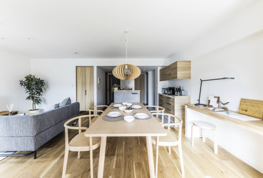 大事なのは、同じ空間で「木材の種類は2つまで」に抑えること。(黒・グレーなど塗装の色は含みません)