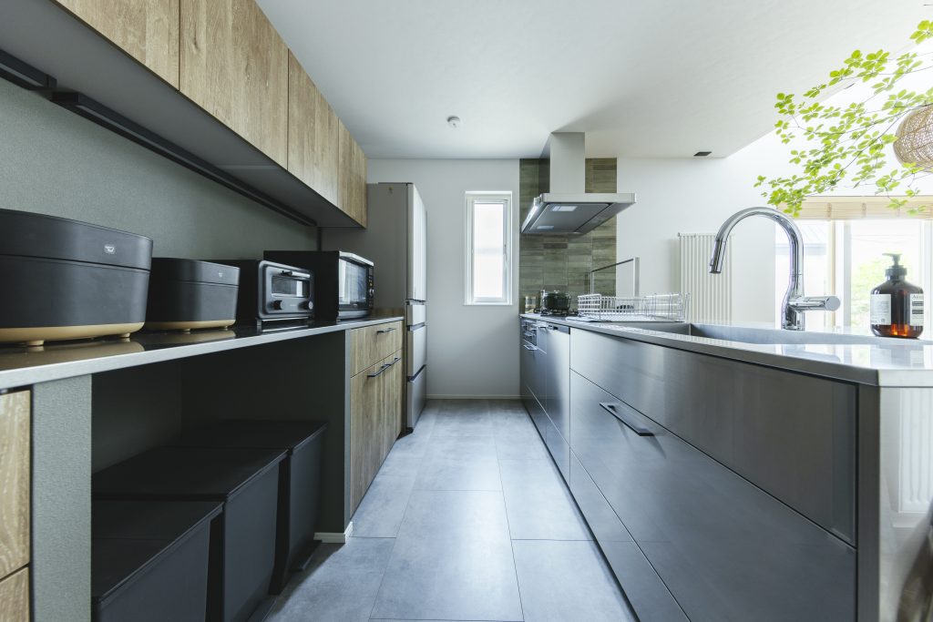ただ、全部を無垢にしたわけじゃなくて、2階とキッチンの床はフローリングにしました。キッチンはどうしても水や油が飛ぶから、掃除のしやすさを優先して。