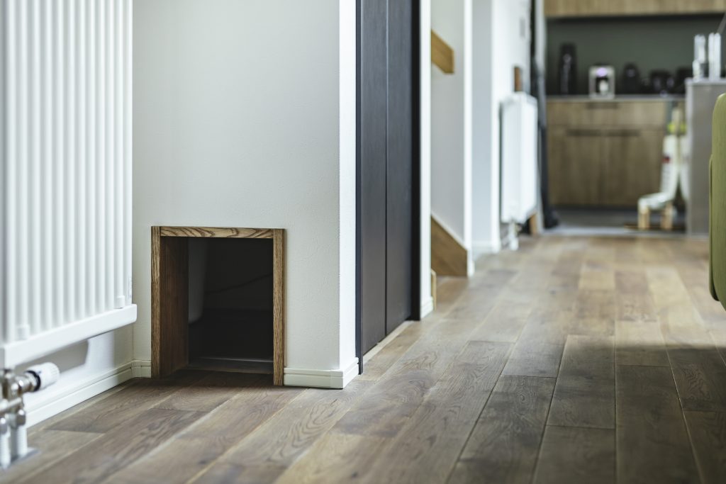 あとは、 “2匹にもしっかり部屋をあげたい”という夫婦の思いがあったので、階段下には猫のためのスペースを作りました。 局所換気を取り入れて、匂いがこもらないよう配慮しました。今ではふたりとも快適そうに過ごしています」