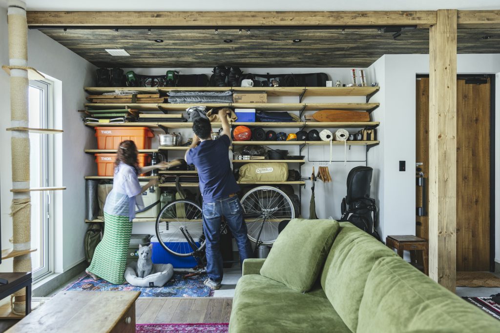 「夫婦ふたりともアウトドアが好きなので、キャンプから帰ってきたときに、荷物をスムーズに片付けられるような動線はマスト。アーバンアウトドアハウスはそこを考えられているのが決め手です。我が家も入ってすぐに広い土間と壁面収納をつけたのですが、使い勝手が良くて、本当に満足しています。
