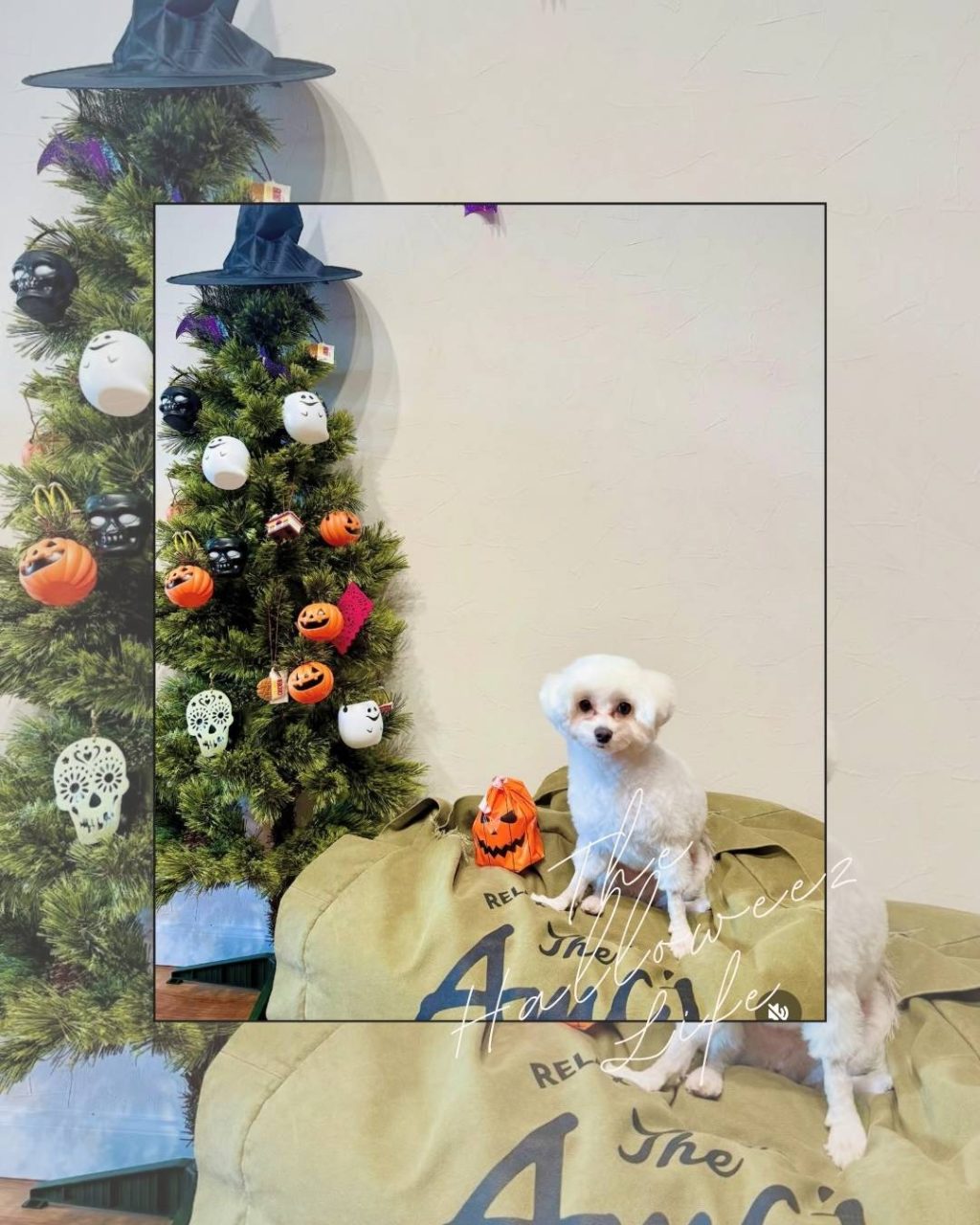 トリミングに行ったロッキー今回もめちゃくちゃ かわいくしてもらいました♡足の付け根は少し長めに何か履いているかのようでかわいすぎ♡ふわふわ〜♡そしてなんと、ハロウィン🎃だからとお菓子をプレゼントしていただきました‼︎人間も食べられるというパンを選びこのあとおいしく食べていました😋ロッキーもハロウィン🎃を楽しんでいます(@ekamcjd5 さん)