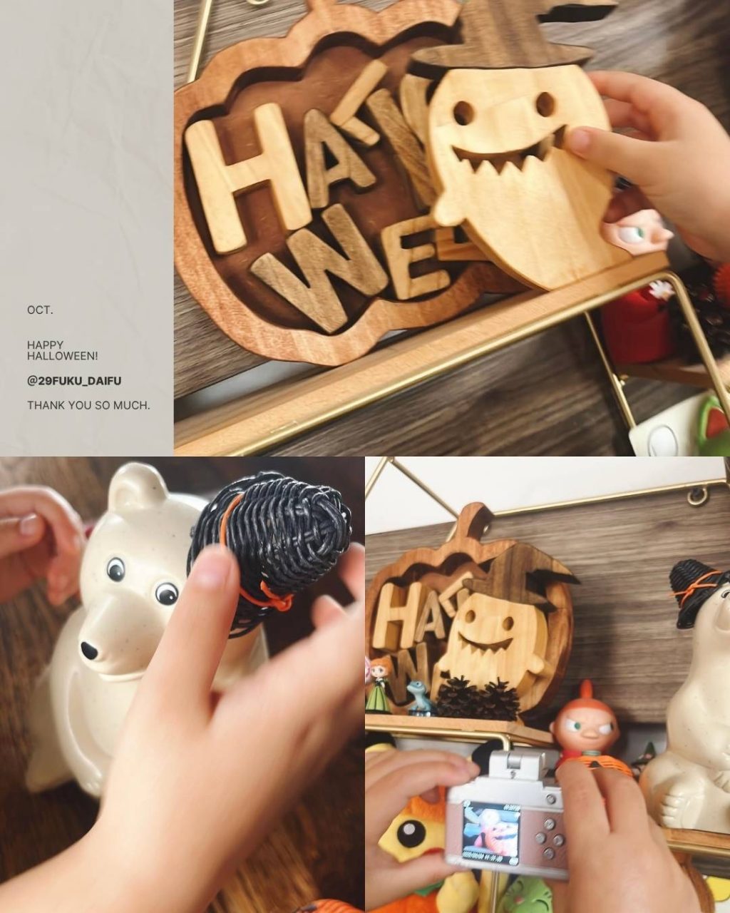 季節の飾りを毎月変えるのは長女のお仕事✨マイカメラでの撮影もかかせません☺️「はやくハロウィンこないかな〜」と楽しみな声が(@29fuku_daifu さん)