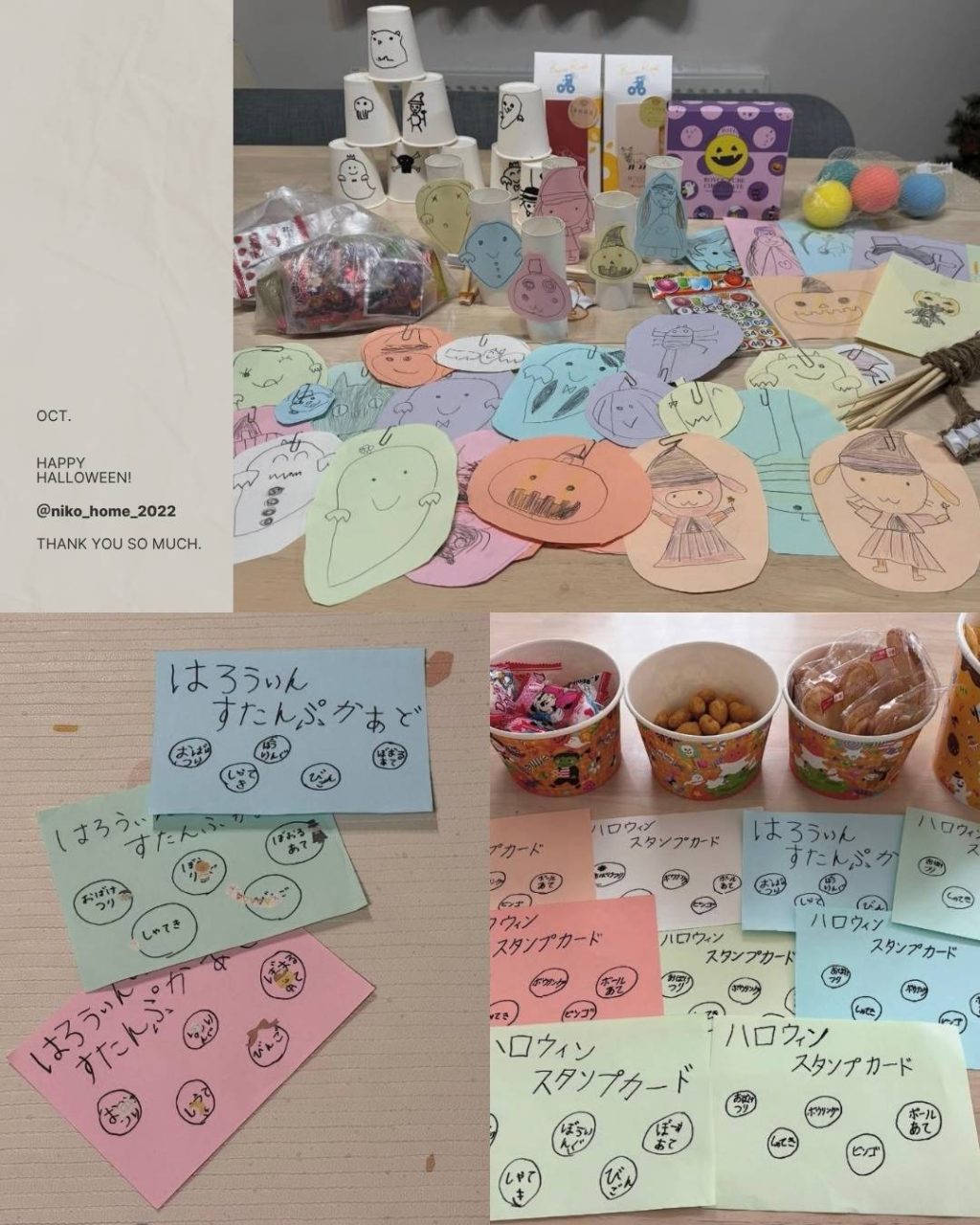 いつもは長女のクラスの子だけですが、今年は次女のクラスの子にも声をかけて、2週連続で開催しました!例年お菓子を作ったり自由に遊んだり、あまり事前に準備はしていないのですが、今年は子どもたちと一緒にたくさん工作して色々なゲームを用意して遊びました♡(@niko_home_2022さん)