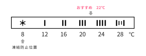 最初はボイラー温度を40℃前後に、パネルヒーターの目盛りは中央に設定しましょう。